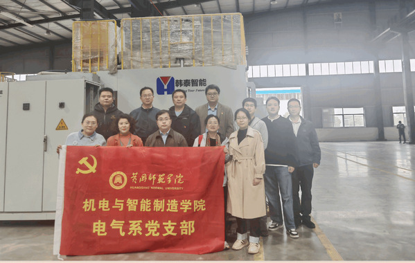 在湖北韩泰智能设备有限公司,支部教师在公司相关负责人的带领下参观了公司主要在售在研产品,在听取了公司的基本情况和产品简介后,校企双方就产品研制过程中遇到的主要技术问题、解决方案及企业所需人才引进等问题开展了深入的交流。并在部分合作项目上达成初步共识。