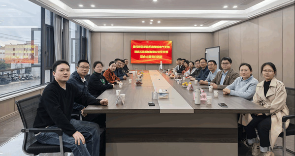 在湖北五易机械有限公司。学院副院长刘小俊、浠水县委组织部人才办周主任及散花镇党委书记李书记等一起为“湖北五易机械有限公司博士创新站”揭牌。在联合主题党日活动环节,参会人员一起学习党的二十届四中全会精神等内容并就学习内容发言、谈体会等,完成规定动作后。校企双方结合实际,开展技术交流等活动,五易公司相关负责人汇报了公司基本情况、行业背景和产品研制情况,五易公司科技副总、“博士创新站”领衔博士、电气系高峰老师汇报了公司未来发展十大技术需求,公司技术总监就某型号产品研制过程中遇到的实际问题与支部教师进行了探讨,并就相关问题开展了深入的技术交流。
